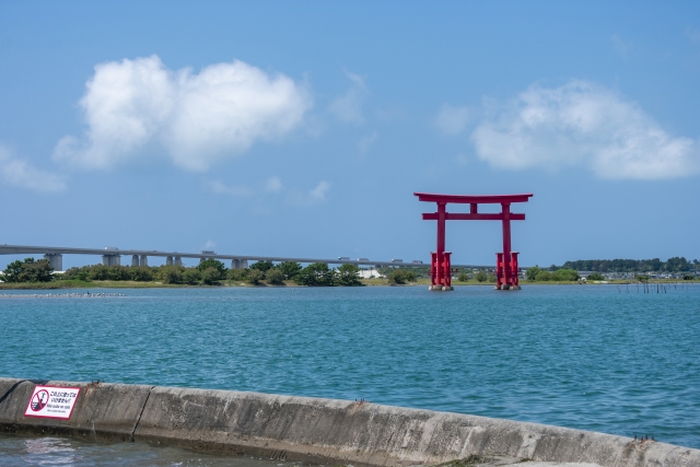 The iconic “Red Torii Gate of Benten Island” stands at the boundary between sea and lake, appearing to float mysteriously on the water’s surface. In Japan, torii gates are considered “gates connecting the divine and human worlds,” and here, nature itself creates a sacred space.